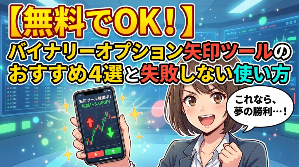 「チャートに矢印が出たら、その通りにエントリーするだけで勝てるツールがあるらしい」そんな噂を聞いて、スマホの検索窓に「バイナリーオプション 矢印 ツール 無料」と打ち込んだあなた。 その気持ち、痛いほどわかるわ。 だって私も、かつてまったく同...