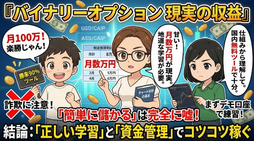 「バイナリーオプションって、本当に儲かるの?」 夜中にスマホで検索した経験、あなたにもあるんじゃないかしら。 私はあるわよ。何度も。 「バイナリーオプション 儲かる」「バイナリーオプション 月収」検索履歴が恥ずかしいくらい残ってた。あの頃は「...