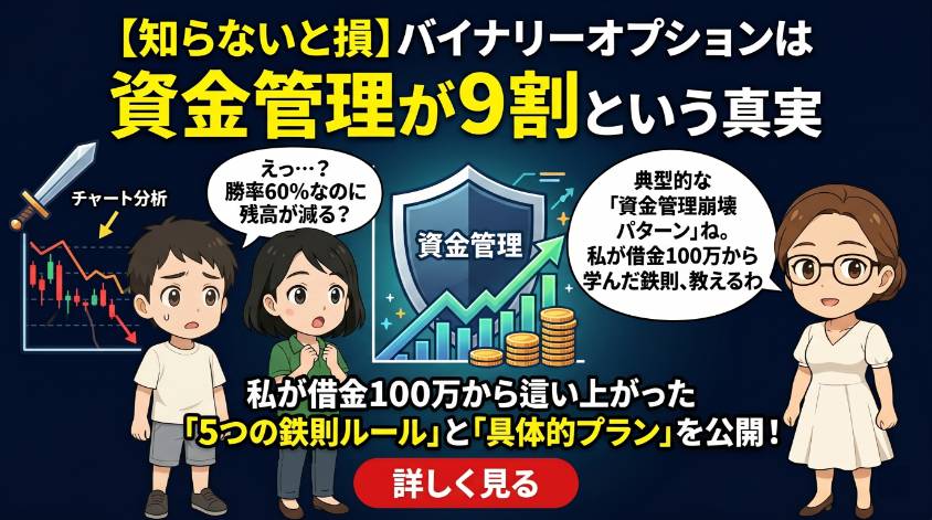 「バイナリーオプションで副業、始めてみようかな」 スマホで"バイナリーオプション 副業"って検索した時、胸がちょっとドキドキしなかった? 「これなら隙間時間で稼げるかも」「会社にバレなければ…」って、淡い期待を抱いてるんじゃないかな。 その気...
