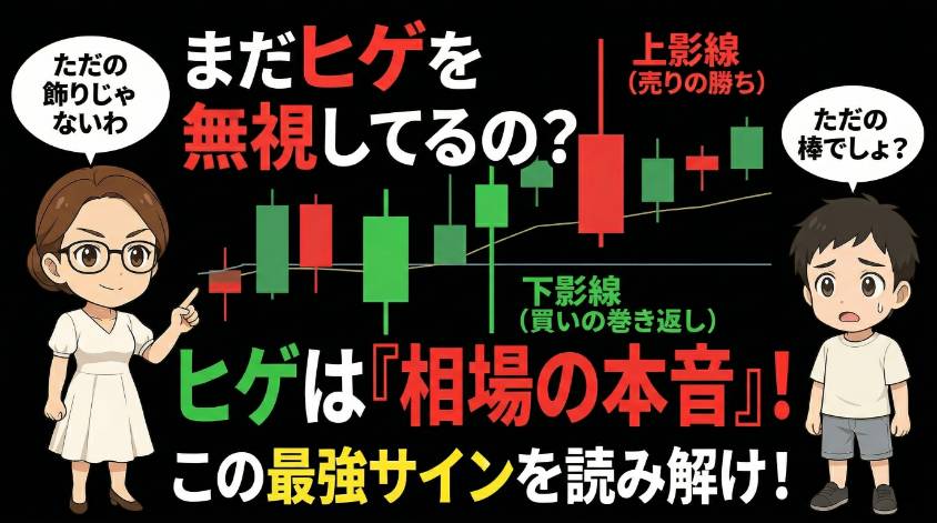 「ローソク足って、ただの棒でしょ?」 15年前の私も、そう思ってた。赤と緑の棒が並んでるだけ。上下にピョンピョン伸びた線。あれが何を意味してるのか、まるでわからなかった。 でもね、ある日「ヒゲ」の意味を理解した瞬間、チャートが全く違うものに...
