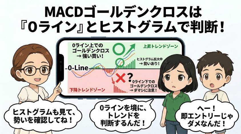 「MACDのゴールデンクロスでエントリーしたのに、またすぐ逆に動いた…」 こんな経験、ある? 私、あるよ。しかも何十回も。 MACDってバイナリーオプション界隈でよく名前が出てくる指標なのに、いざ使ってみると「ゴールデンクロスが出たからHIGHエントリ...