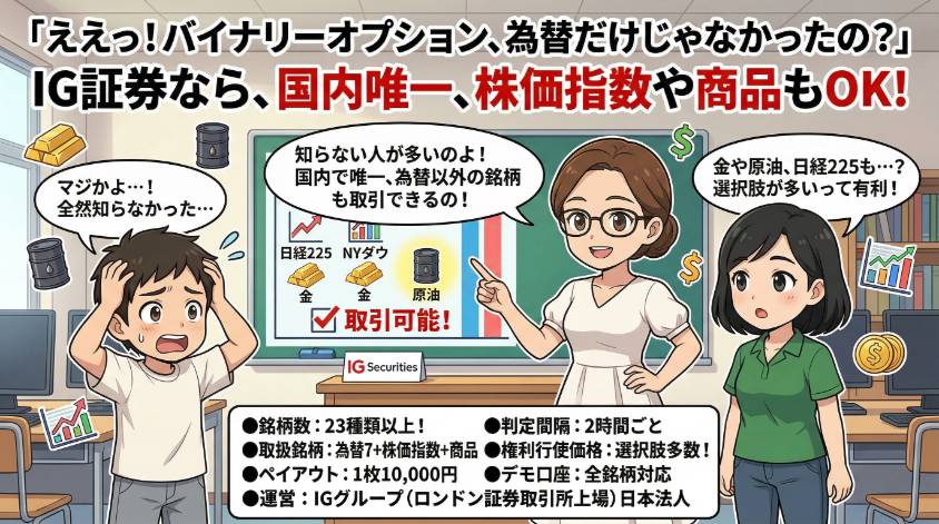 IG証券のバイナリーオプションは「為替以外」ができる唯一の国内業者