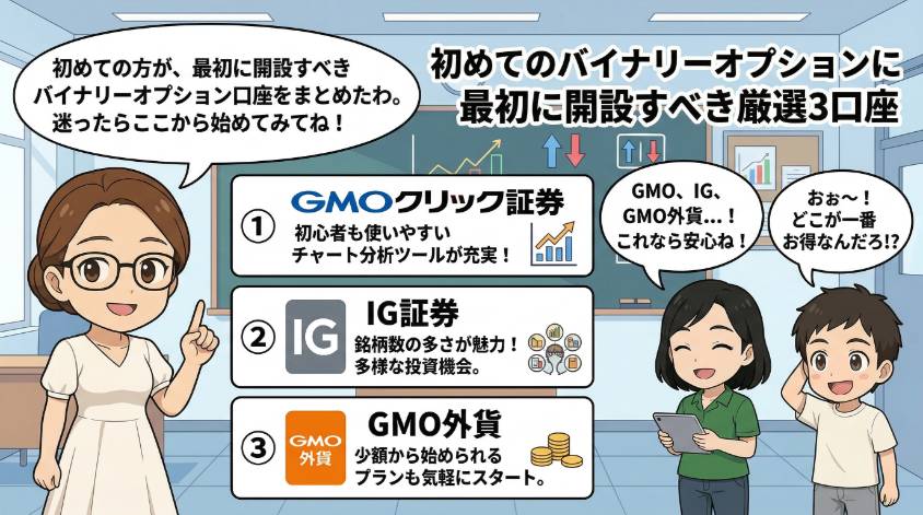 まずはGMOクリック証券で分析力を鍛える。慣れてきたらIG証券世界を広げる。この順番さえ守れば、あなたのバイナリーオプションは確実にレベルアップするわ。