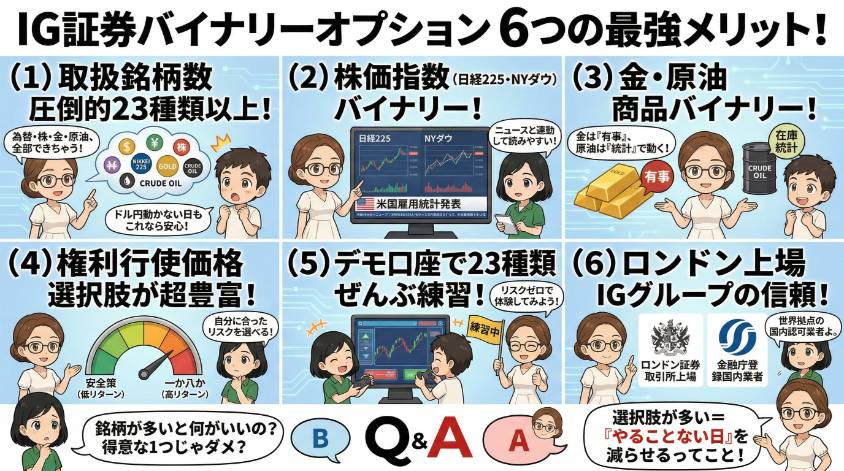 IG証券のバイナリーオプションの強みを、実際に使った経験も交えて6つ紹介するわね。