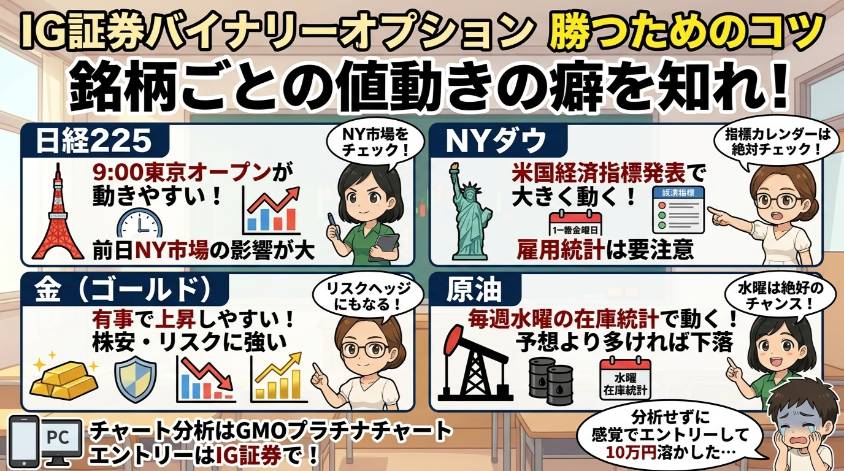 IG証券のバイナリーオプションで勝つためのコツ 銘柄ごとの値動きの癖を知れ