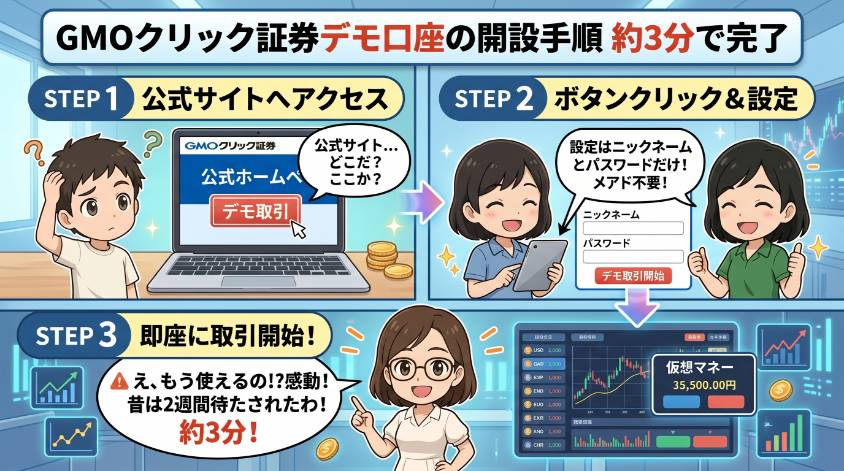 • GMOクリック証券デモ口座の開設手順 約3分で完了