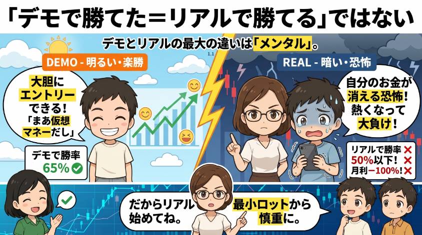• デモトレードの落とし穴 「デモで勝てた=リアルで勝てる」ではない