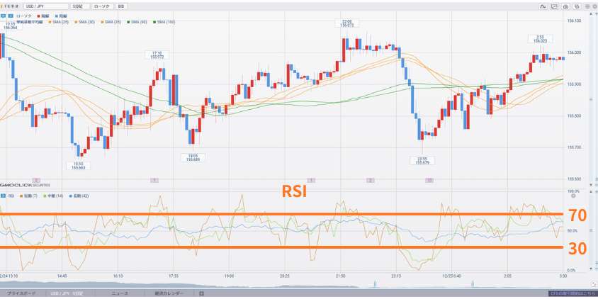 初心者には、移動平均線とRSIの組み合わせがシンプルでおすすめです。移動平均線でトレンド方向を決め、RSIで押し目の深さを確認してエントリーします。使う指標は少なくし、同じ型で反復することで上達しやすくなります。