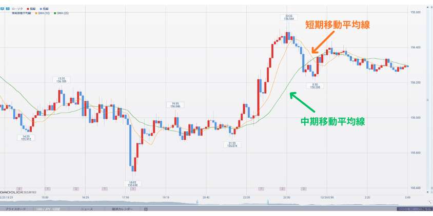 移動平均線は方向と角度が大事で、横なら流れが弱い合図です。