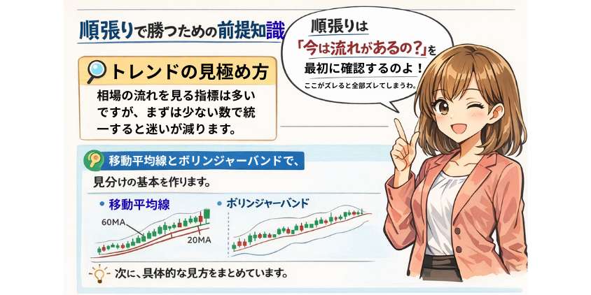 順張りで勝ちやすくするには、まず流れを見分ける力が要ります。