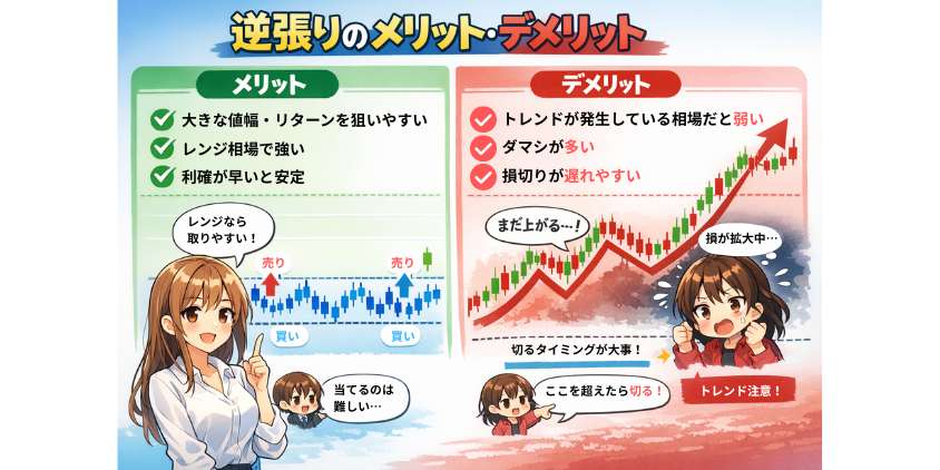 逆張りは良い点も多いので、順張りができない場合の補助として使うと役立つわ。