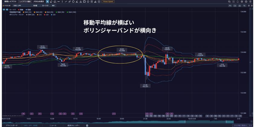 ずっと同じ幅で上下する相場は、順張りだと損切りが増えがちです。
