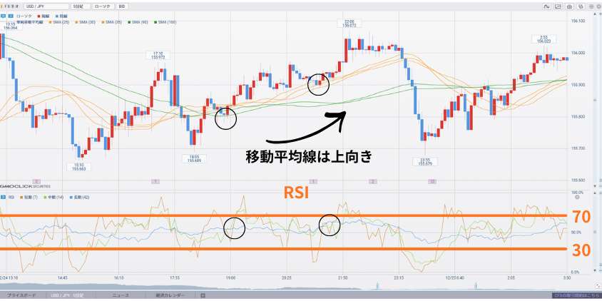 上昇トレンドでは買い、下落トレンドでは売りを考えます。