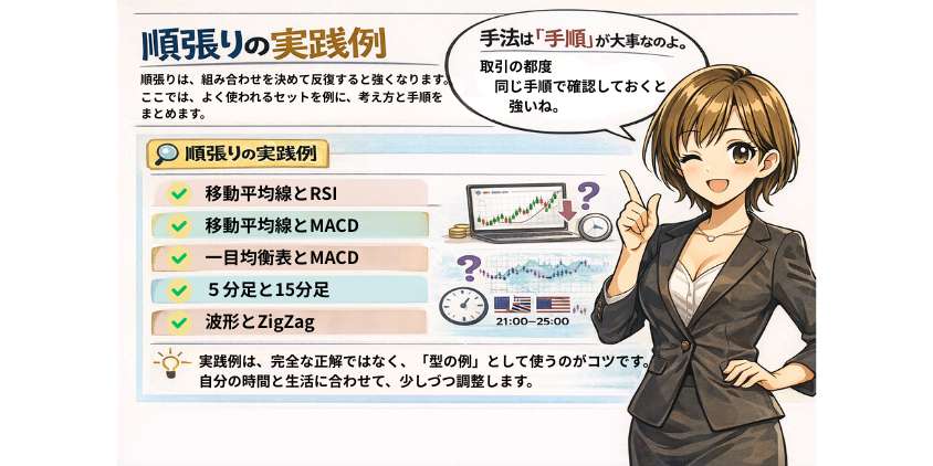 順張りは流れに乗る練習がしやすいので、エントリーポイントを決めて検証すると上達が早まるよ。