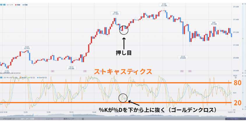 その日は、少し下げた場面で買うと、次の上げに乗りやすいです。