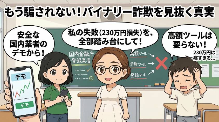 あなたには、私と同じ痛みを味わってほしくない。この記事に書いたことを覚えていれば、バイナリーオプション詐欺に騙されることは絶対にないから。
