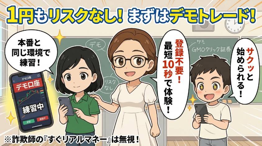 まずはデモトレードで練習 1円もリスクを取らずに体験できる