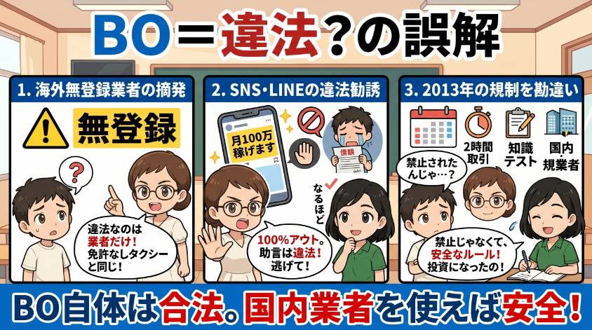 - なぜ「バイナリーオプション 違法」と誤解されるのか?3つの原因