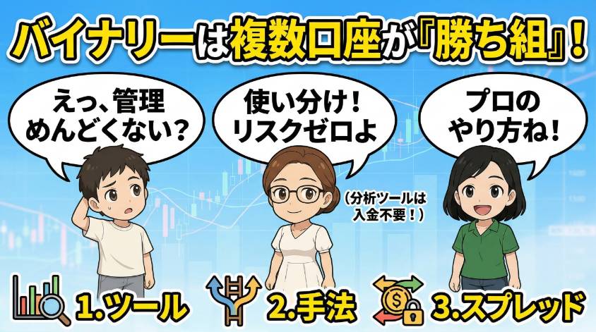 バイナリーオプションの口座は、1社に絞る必要はない。