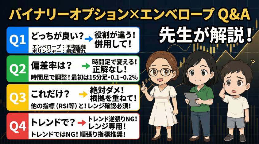 最後に、バイナリーオプションのエンベロープについて多くの方が疑問に感じるポイントをQ&A形式でまとめました。