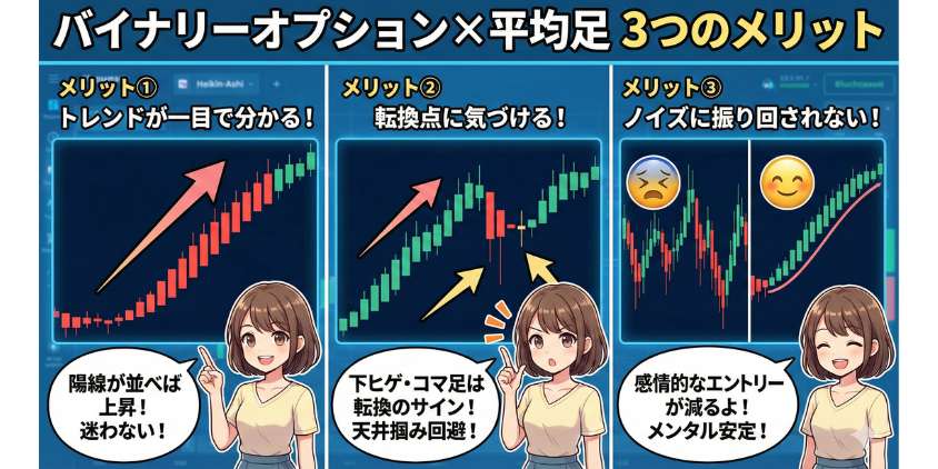 ・バイナリーオプションで平均足を使う3つのメリット