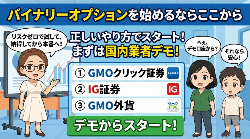 正しいやり方でスタートするなら、まず国内業者のデモ口座から。私が実際に使ってきた3社をここに集めたわ。リスクゼロで試せるデモからスタートして、納得してから本番へ進んでほしい。