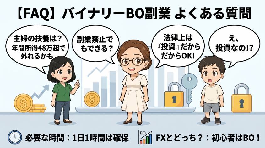 バイナリーオプションの副業について多くの方が疑問に感じるポイントをQ&A形式でまとめました。