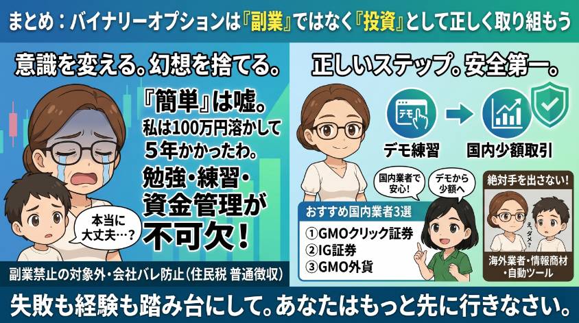 まとめ:バイナリーオプションは「副業」ではなく「投資」として正しく取り組もう