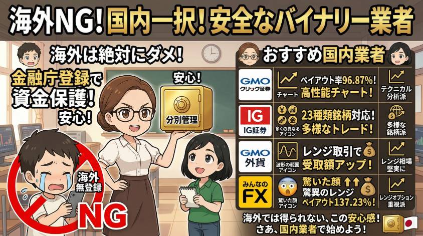 安全にバイナリーオプションを始めるなら国内業者一択