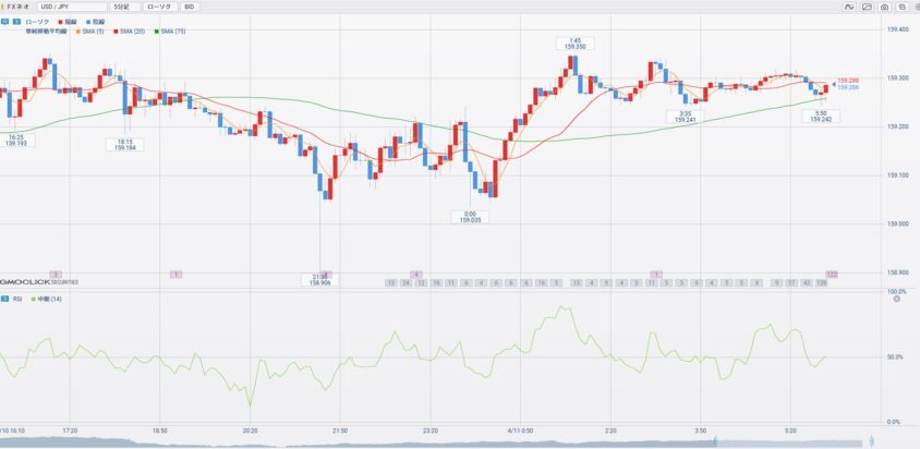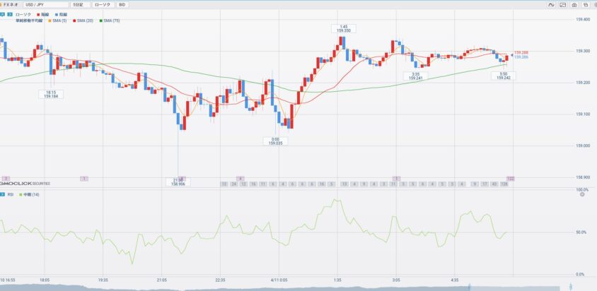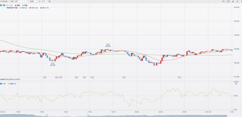 使うテクニカル指標はたったの2種類。移動平均線(MA)とRSIだけ。シンプルに見えるかもしれないけど、これで十分なの。余計な指標を増やしても、シグナルが矛盾して判断に迷うだけよ。