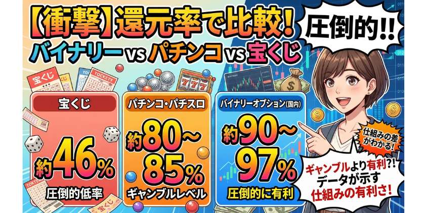 還元率で比較 バイナリー vs パチンコ vs 宝くじ