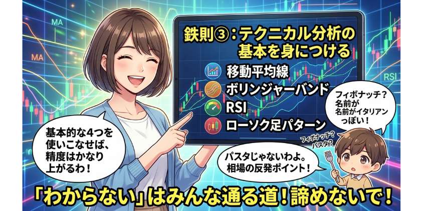 いきなり勝ち続けるのは難しいけど、テクニカル分析の基本を学び、資金管理を徹底し、デモトレードで練習を積めば勝率は上がっていくわ。大事なのは「最初から勝とう」じゃなくて「退場しないこと」。生き残ってさえいれば、経験値はどんどん貯まっていく。