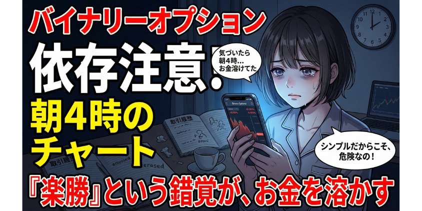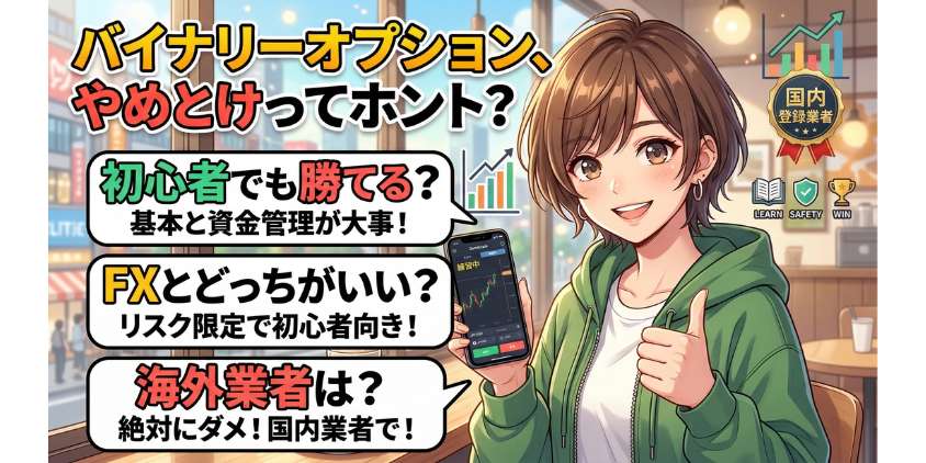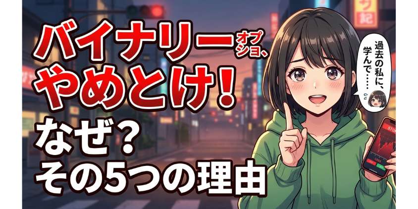 この記事では、バイナリーオプションが「やめとけ」と言われる理由を全部正直に伝えた上で、正しいやり方を知れば勝率を上げられる現実もちゃんとお話しするね。読み終わる頃には、自分の頭で「やるか、やらないか」を判断できるようになってるはずだから。