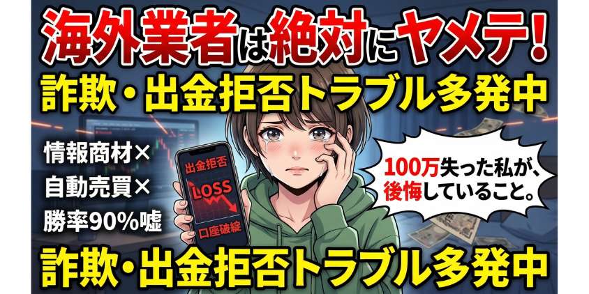 このタイプの「やめとけ」は、ある意味で正しい。海外の無登録業者に騙されて、出金できなくなったり、そもそもレートを操作されていたりした人たち。