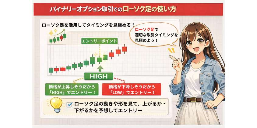 ローソク足はバイナリーオプションにおける「最強の武器」。形・長さ・流れをしっかり読み取り、エントリーや判定の根拠に活かすことで勝率アップに繋がります。