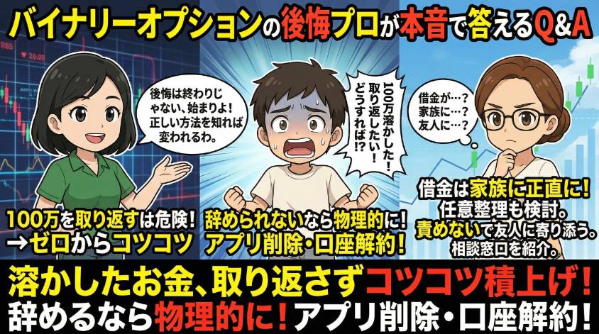 バイナリーオプションの後悔について多くの方が疑問に感じるポイントをQ&A形式でまとめました。