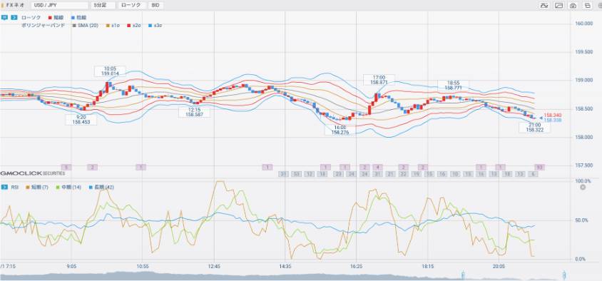 「なんとなく」のエントリーは今日で終わり。最低でも移動平均線・ボリンジャーバンド・RSIの3つは覚えて。これだけで「根拠のあるエントリー」ができるようになるわ。