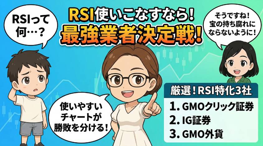 RSIを使いこなすなら、チャートと分析ツールが充実した業者を選ぶことが大前提よ。どんなにRSIの使い方を覚えても、チャートが見にくい業者を使っていたら宝の持ち腐れだからね。