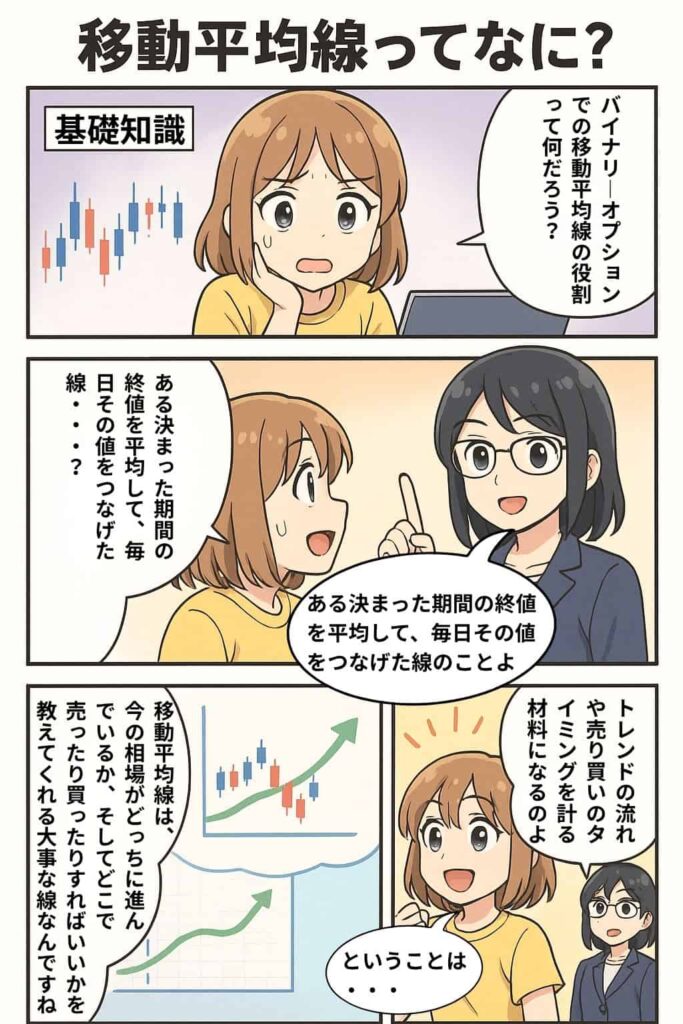 「移動平均線って聞くけど、どう使えばバイナリーで勝てるの?」