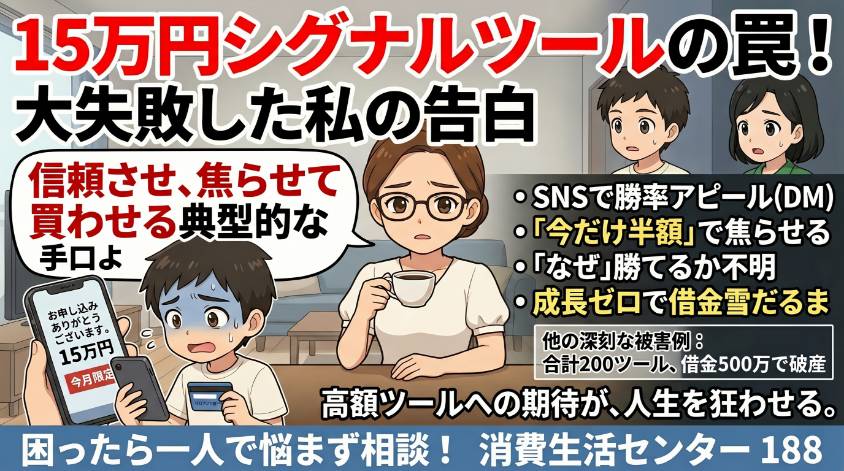 正直に言うわ。私も昔、SNSで知り合った人に「このツールを使えば勝率80%以上」と言われて、15万円の有料シグナルツールを買ったことがある。