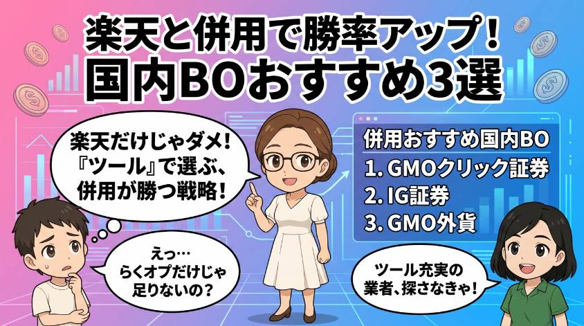 この記事では、楽天証券のバイナリーオプション「らくオプ」の全貌、楽天ポイントの真実、他社との比較、そして始め方まで全部まとめたわよ。楽天ユーザーのあなたにとって、最善の選択肢が見つかるはず。
