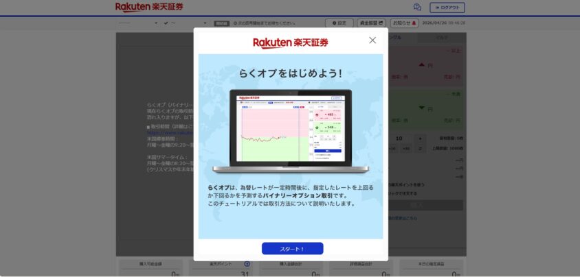 • 楽天証券の「らくオプ」は手軽にバイナリーオプションを始められるサービス
