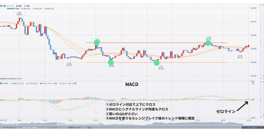 - MACDがゼロライン付近で横向き