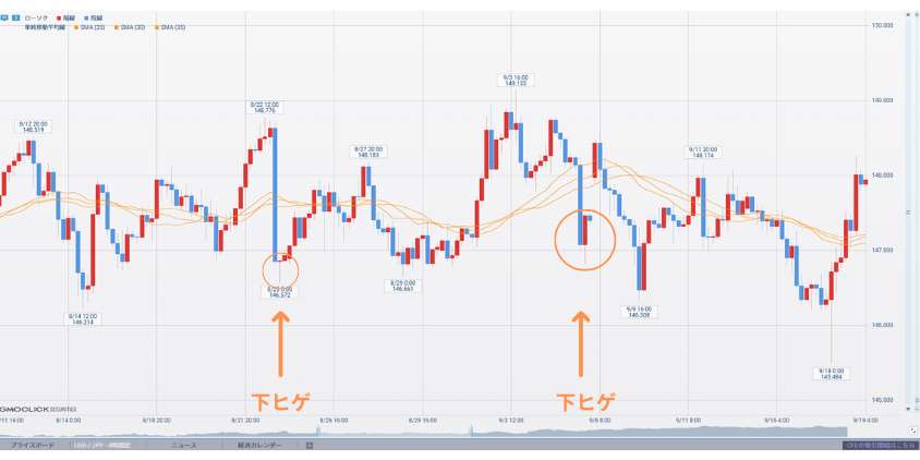 - 高値安値が上下にそれぞれそろう
