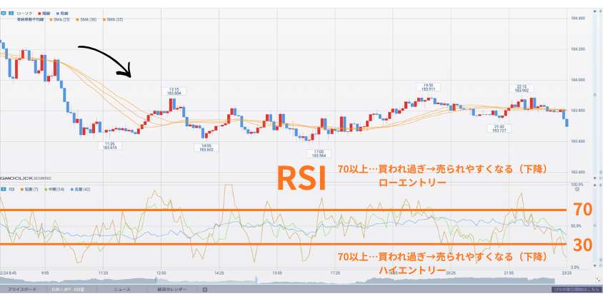 - RSIの行きすぎ反転