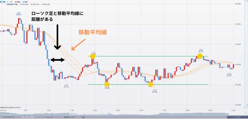 - 移動平均線が横向き