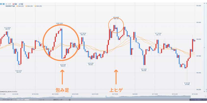 さらに、上ヒゲや包み足が見えれば、反発する根拠に箔がつきます。