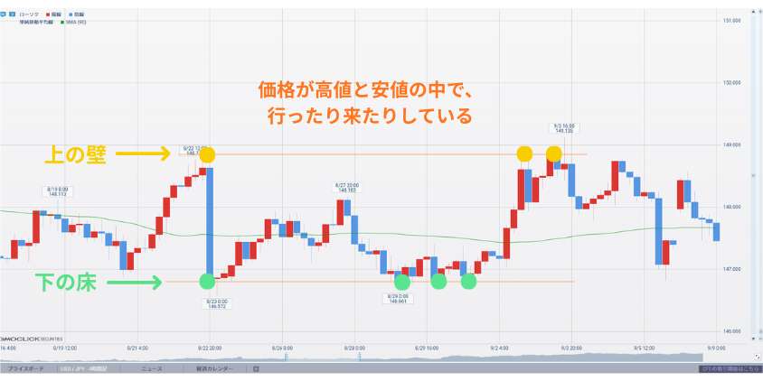 - レンジは高値安値が固定