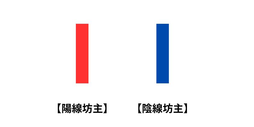 陽線(始値<終値=上がった)と陰線(始値>終値=下がった)の2種類があるわ。