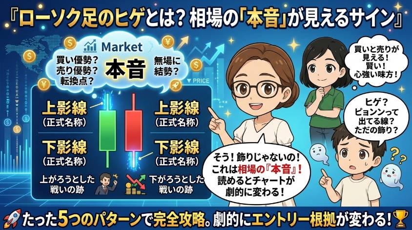 でしょ? ヒゲは相場が発してるメッセージなの。読み取れるかどうかで、エントリーの精度がガラッと変わるわよ